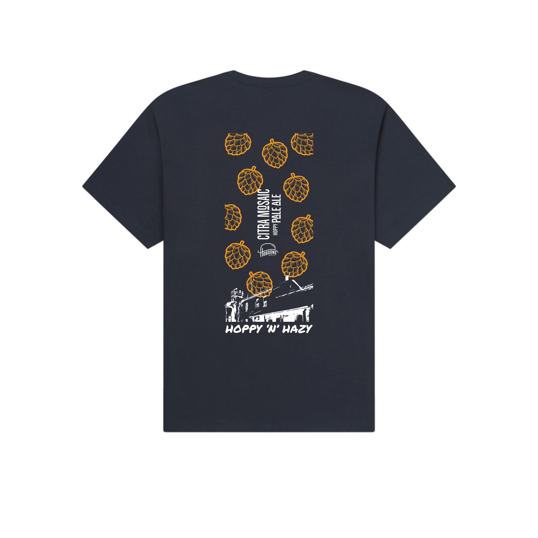 Show off your love for hoppy pale ales with the Hobsons Citra Mosaic T-Shirt, inspired by our Hoppy 'N' Hazy Citra Mosaic Pale Ale. This stylish unisex tee features a bold hop-forward design, the iconic Hobsons Brewery taproom, and a relaxed modern fit for ultimate comfort.